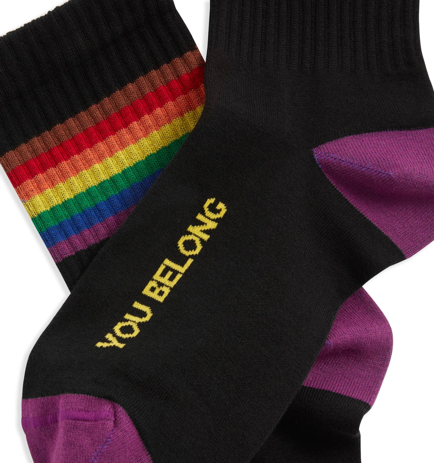 This low-cut pair of socks features grippy ribbing at the ankle along with updated pride stripes, a dollop of purple at the heels and toes, and a reaffirming message of “you belong” on the profile. A double-ply, fine-gauge knit of Peruvian Pima cotton blended with stretch and finished off with a little extra softening delivers borderline absurd comfort all day long. A collaboration with our fellow Seattleites and comfort connoisseurs at Posie Turner.