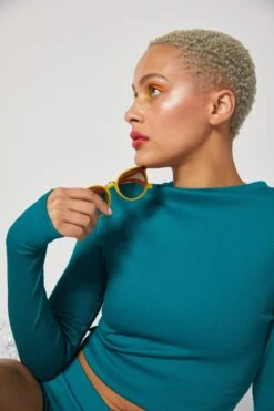 Introducing the sporty swim top of your beach day dreams. High coverage plus a built-in shelf bra means no sunburn and absolutely no worries. Itâll keep you comfortable and confident all day, whether youâre the âgood book under the umbrellaâ or a âboogie board âtil youâre bruisedâ type.
